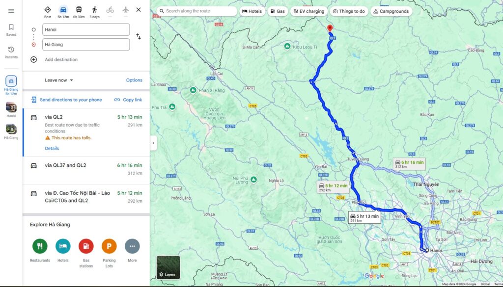 - Private Car: If you prefer a more comfortable and private experience, traveling by car is a great option. Whether you own a car or rent one, driving from Hanoi to Ha Giang allows you to control your schedule and stop wherever you like to enjoy the views. However, the winding roads and steep slopes require careful driving, especially in bad weather.